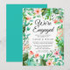 Lush turquoise blue botanical leaves and vines frame your engagement party details. Small coral pink flowers dot the greenery. The back of the invitation is turquoise blue. This engagement party invitation is part of the Tropical Botanical collection. It provides the DIY templates to let you easily design and host a great party. You should see a link to the collection on this page. If you don't see the link or need help with an item, please contact me.