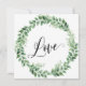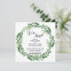 Using an elegant, swirling, modern script font, I've created a graphic overlay that reads "We're Married", to complement the sophisticated all-caps, serif font used for your details. The same "fancy font" was used to place the word "Love" on the back. The text is accented with a green watercolor wreath of leaves and herbs. All layers were added separately and left unlocked to give you significant design control; make whatever modifications needed to create the card you envision. If needed, you can rotate the wreath to better accommodate your wording. And please don't hesitate to reach out to me if you need customising assistance or have special requests. // 119 //