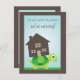 A cute turtle carrying a house. A great announcement for a new home or to let people now that you have a new address.