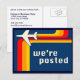 we're posted announcement : retro stripes postcard