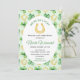 A charming St. Patrick’s Day baby shower invitation featuring a soft green background, golden horseshoes, and scattered four‑leaf clovers for a sweet “lucky charm” theme. The central white oval frames the event details beautifully, creating a warm, welcoming design perfect for celebrating a growing family. Ideal for March celebrations, Irish‑inspired themes, or any baby shower that embraces luck, joy, and new beginnings.