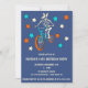 Celebrate BMX fans with these invitations. They feature my hand-drawn comic book style illustration of a werewolf skeleton riding a BMX bike surrounded by stars. The ivory, aqua blue and orange graphics are set against a blue background. Below all of your party details are in a coordinating ivory colored lettering.