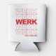 Our fun retro can cooler design takes its cue from the classic "thank you, have a nice day" grocery bag, with "WERK" repeated five times in bright, bold red block typography and "have a nice day" printed beneath. Design repeats on back.