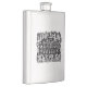 The product is a good size and came exactly as it was pictured. The lid is not attached to the flask, which could be dangerous on drunken nights... The print came out surprisingly well and looks very sharp. Would definitely recommend.