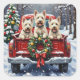 Brighten your holiday season with this adorable West Highland White Terrier Christmas design! This festive image features three snowy-white, cheerful West Highland White Terriers (Westies) enjoying a ride in the back of a classic red pickup truck, nestled in a picturesque snowy winter forest. The truck is charmingly decorated with a vibrant Christmas wreath, adorned with sparkling red and gold ornaments and warm, glowing lights. Soft snowflakes gently fall, creating a magical winter wonderland. With a decorated Christmas tree in the background, this design is perfect for capturing the joyful spirit of the holidays and makes an excellent Christmas gift for any Westie owner, dog lover, or admirer of festive dog breeds.