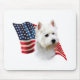 USA! America! Shout your pride with this awesome flag Patriotic background with this AKC dog breed West Highland White Terrier in the forefront. Show your pride with this design on a t-shirt, mug, and much, much more!