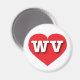 This magnet features a vibrant red heart containing the bold, white, upper case letters WV, the official abbreviation for West Virginia, the mountain state.