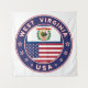 Badge of West Virginia with flag of West Virginia and flag of USA colours, rounded shape.