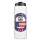 Badge of West Virginia with flag of West Virginia and flag of USA colours, rounded shape.