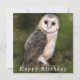 Happy Birthday - Western Barn Owl - Migned Watercolor Painting Art Beautiful Forest Bird - Add Your Text / Name / Picture