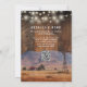 This rustic western barn wood wedding invitation featuring a western ranch mountains scene and string lights on a barn wood background can be personalized with your information in stylish typography. With all your special wedding day information on the reverse, including your registry QR code. Designed by Thisisnotme©