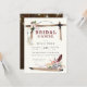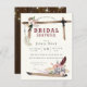 Boho arch with feathers, crystals, arrows, and flowers frame a delightful bridal shower invitation. Reverses to Rustic painted wood and string lights. Perfect for any time of the year. Your guests will anticipate a a fun and unique event. A little bit whimsy, a little bit Western, and a little bit rustic. Colours are Deep brown, Rose pink, and Dark red on Cream.