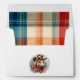 Set the tone for a wild west celebration with this Little Cowboy Baby Shower Envelope! Featuring a charming baby horse in a cowboy hat and a bandanna, this rustic design is perfect for adding a touch of country charm to your invitations. The envelope liner boasts a classic western plaid pattern in warm desert hues of dusty blue, terracotta, and beige, creating a stylish yet nostalgic feel. Ideal for pairing with cowboy-themed baby shower invites, thank-you cards, or party favours!