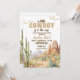 A western-themed baby shower invitation featuring a desert landscape, cacti, rope accents, and rustic typography. Designed for celebrating a little cowboy on the way, this invitation is ideal for western, cowboy, wild west, or country-inspired baby shower themes.