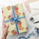 Western-themed patterned wrapping paper features a pair of cowboy boots with revolver and red bandanna on light background