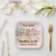 A pretty pink western cowgirl birthday design featuring a girl on horseback riding through a desert with Yee-haw at the top and a spot below for personalising with a name and age, and it says, " Happy Birthday " beneath the name and age.