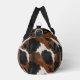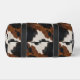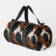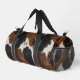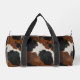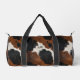 For cowboys, cowgirls, cattle hands, ranchers and lovers of all things western, this unique duffel bag has a brown black and white tri-colour cowhide pattern with a furry look. A text template is included to personalise with your monogram initials. Take it to the gym, school, the office, and getaways. It has the perfect casual appeal to go with blue jeans, cowboy boots and a ten cowboy hat. Note: This item uses a faux cowhide digital print to cover the surface of the duffel bag. There is no actual fur on the product.