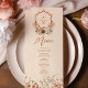 Indulge in the rustic elegance and bohemian charm of your wedding celebration with our Western Crest Country Bohemian Floral Wedding Menu. This exquisitely designed menu card promises to elevate your dining experience amidst the whimsical beauty of your special day.