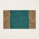 Western themed business card template with a cross cut from faux teal leather print over faux tan tooled leather print Personalise the text on front. See more in the Rodeo Days Store at Zazzle.