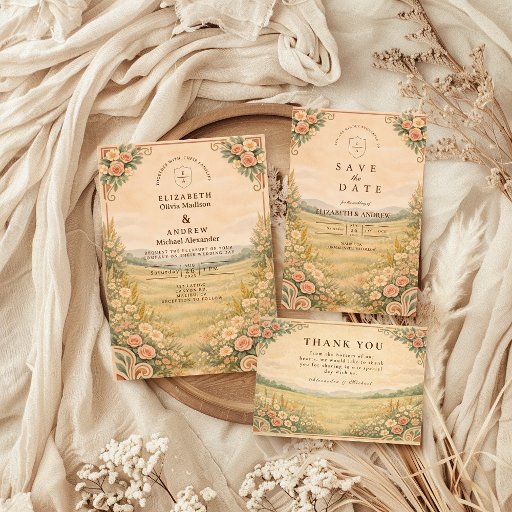 A rustic western wedding design inspired by desert landscapes, warm earth tones, and vintage botanical details. Featuring a sun-washed desert scene, wooden fencing accents, and soft florals, this invitation is perfect for ranch weddings, western celebrations, or couples planning a desert-inspired ceremony. Elegant, timeless, and fully customizable for your special day.