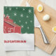 Western Farm Ranch Red Barn Christmas Tea Towel