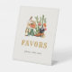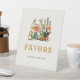 Western Boho Favours Pedestal Sign. Point your guests towards their take-home goodies with this stylish Favours tabletop sign, detailed with hand-painted boots, hats, and cacti in a warm, earthy colour scheme of desert neutrals, dusty pinks, orange hues, and gold and black accents. It’s the perfect finishing touch to tie your party aesthetic together. Set it up with a smile and let your favours speak for themselves!