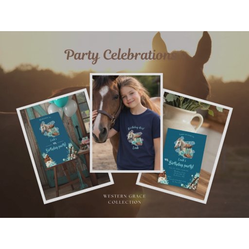 Designed for older girls, teens, and women, this invitation sets the tone for a stylish cowgirl-themed birthday celebration. The refined watercolor artwork balances western charm with a feminine, timeless feel, making it ideal for horse lovers who want a celebration that feels special and thoughtfully designed.