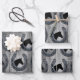 Wrap up a gift for a horse ranch themed party! You could even decoupage this beautiful rustic paper onto furniture and craft applications. The possibilities are endless for this country western horseshoes wrapping sheet set. It features rustic black horse head silhouettes framed by steel grey horse shoes. The background is a grey barn wood planks pattern.