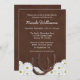 A country themed bridal shower invitation featuring a pair of rustic horseshoes and white Gerbera daisies. Easily customise with your party details!