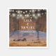 These rustic wedding paper napkins featuring a western ranch mountains scene and string lights on a barn wood background can be personalized with your information in stylish typography. Designed by Thisisnotme©