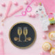 Western themed party plates with champagne glasses with spurs. The background is black with a gold FAUX glitter border.