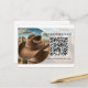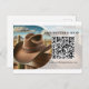 Business postcards with a western theme. Modern design features a cowboy cowgirl hat, wood fence, mountain range, and terrain. Great for western shops and other businesses. The QR code on the front can be used for your online shop or website. Use the template to create your own western business postcards.