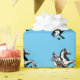 This rustic design featured repeating cowboy on a horse, on a sky blue background.