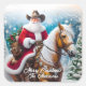 Western Santa Claus Riding Palomino Christmas Square Sticker