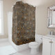 This western shower curtain has rodeo event designs that have been filtered to give a distressed look. There is a brown background with rusty colour scratches.