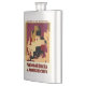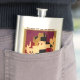 The product is a good size and came exactly as it was pictured. The lid is not attached to the flask, which could be dangerous on drunken nights... The print came out surprisingly well and looks very sharp. Would definitely recommend.