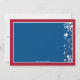 A blue invitation double-framed with white and red. The circular picture window is embellished with a western hint of stars and swirls. Suitable for either gender and any age. The card is easy to customise with your wording, font, font colour and choice of six paper types.
