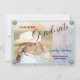 This modern cowgirl western style photo graduation announcement flat card features customisable photo on the front with a lavender meadow background and turquoise concho details. A Beautiful script Graduate moveable overlay. Customisable name in a dark teal colour, plus your graduation date and photo on the front. The back of the card has a personal message that can be removed if you prefer to hand write your Invitation. Plus two more customisable photos. A beautiful card to express your graduates love of western life. See our Collection for additional matching thank you cards and party supplies.