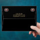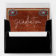 This stylish black and faux tooled brown leather 5"x7" envelope is designed to enclose our cowboy or cowgirl western ranch style customisable photo graduation Invitation card. Features a faux tooled brown leather background with concho details and a script Graduation overlay on the inside flap of the envelope. Back flap embellished with conchos and customisable return address in gold or remove to add your own handwritten information to the envelope. A beautiful western ranch style card to express your graduates love of western cowboy or cowgirl life. See our Collection for additional matching announcement, thank you cards and party supplies.