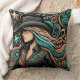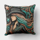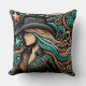 Western Tooled Leather Print Cowgirl Throw Pillow in Turquoise, black, peach and copper