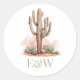 Western Wedding Cactus Monogram Classic Round Sticker