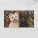Cute business cards featuring a the classic black and white pair, a westie and a scottie in a William Morris style vintage garden. Elegant cottage core style, for dog lovers, pet businesses, pet care, pet sitters, dog walkers and more.