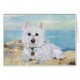 Soft peach and a turquoise sea provide a beautiful backdrop for this West Highland White Terrier on a beach outing! Send greetings to your friends Westie style with beauty and colour! All sales support West Highland White Terrier Rescue!