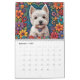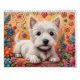 Westie calendar showing 6 x 2 beautiful images of Westies on folk art backgrounds. (Each picture is repeated once throughout the calendar).
