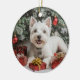 This adorable Christmas ornament, featuring a West Highland White Terrier lying under a Christmas tree, is a wonderful gift for any Westie lover.