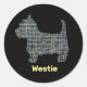 Westie Dog Yellow & Blue Grid Lines Abstract Classic Round Sticker
