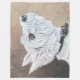 West Highland White Terrier, Westie looking up, in profile with brown background. Benji. Copyright © 2025 Angi Laframboise. All rights reserved. Fine art dog breed gifts for dog lovers.
