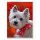 This little Westie puppy is posing proudly, sporting a cheerful red and white snowflake bow to put you in the spirit of the Season.