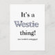 Its a West Highland White Terrier thing and only you understand. Put this "It's a Westie thing, you wouldn't understand" design on a t-shirt, mug, sticker, card, button, poster and more.