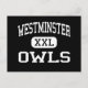 Go Westminster Owls! #1 in Westminster Maryland. Show your support for the Westminster High School Owls while looking sharp. Customise this Westminster Owls design with your favourite sport, activity, or school group. Personalise it with your name and jersey number, or your favourite player's name and jersey number. If you're alumni, graduating, or a recent graduate, you can customise with your graduation year! These Westminster Owls tshirts, gifts, sweatshirts, jerseys, stickers, mugs, mousepads